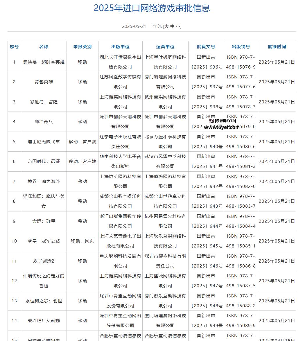 从游戏平台分类来看,本次获批游戏以移动端为主,其中"移动"类游戏70款,"移动-休闲益智"类54款。此外还包括5款"移动、客户端"双平台游戏,以及1款支持"移动、客户端、PS5游戏机"三平台的游戏。数据显示,今年前5个月,国产游戏版号发放总量已突破600个。