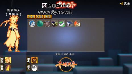 4、在战斗准备界面,您需要依次选择您的忍者、秘卷和通灵兽。选择完毕后,点击“开战”选项,准备开始战斗。