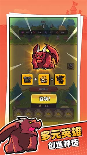 1、非常多的英雄可以让你去选择招募,随机获得的不同品质英雄等你去自由搭配阵容。