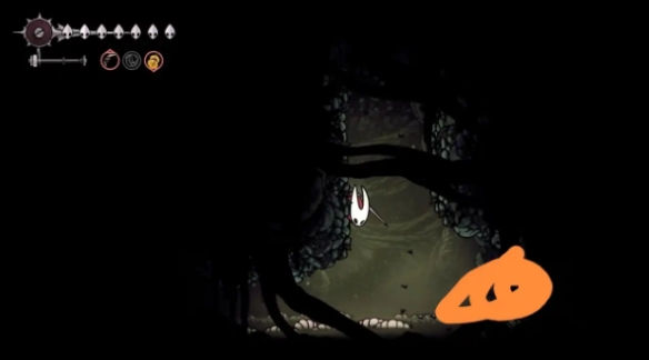 建议如果大家被boss逼到墙角的时候,尽量从boos上方或下方想办法逃走。逃走方法很简单,主要灵丝冲刺绕开就行。否则如果当面对着boss,基本会被口水吐到。