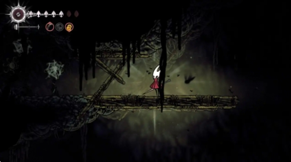 下来以后需要玩一段跳跳乐,这里直接往右二段跳接灵丝冲刺到右边木板