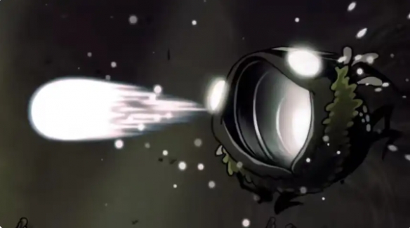 这一招是类似小骑士的发波攻击,有非常明显的前摇,如果察觉到boss要发波,尽量判断好发波的高度,可以在左右两边的墙上爬行来改变自己的高度从而轻松躲避。