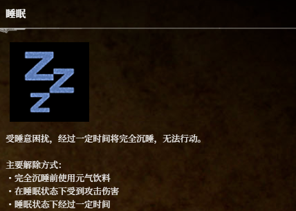 受睡意困扰,经过一定时间将完全沉睡,无法行动。