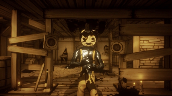 《班迪与墨水机》是一款第一人称解谜动作恐怖游戏。它将在故事开头带你回到遥远的古早动画年代,并终结于无比黑暗的未来。你将扮演Henry重返Joey Drew Studios废弃的动画工坊,并直面过往的恶魔。《班迪与墨水机》处处充满了出人意料的剧情转折,它必定会让你毛骨悚然……并且摧毁你美好的童年回忆。
