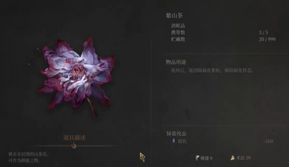 2、释放法术命中三次BOSS可以挂上腐败,注意【腐】字有外部亮线时才开始累积。记得携带【紫山茶】消除自身腐败积累。