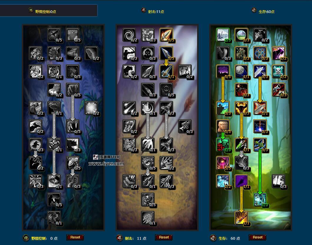 生存猎pvp天赋加点推荐为01160大雕文:爆炸射击,冰霜陷阱,逃脱;小雕文:体型缩小,复活宠物,假死。来源:NGA论坛...