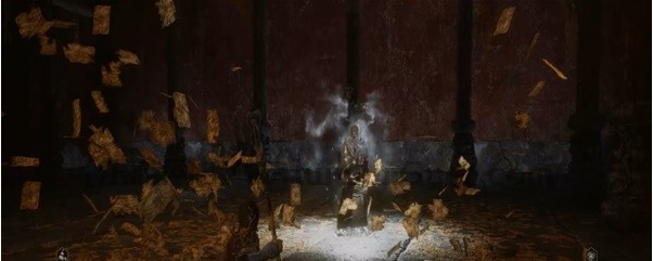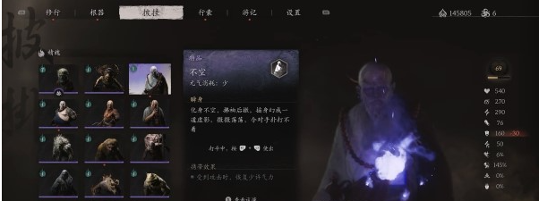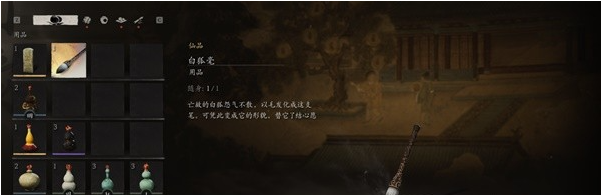 来到二楼的门处,往外看就能看到不空所在的偏殿。打开菜单选择【行囊】,使用从狐狸那里获得的笔,变成狐狸,进入偏殿触发剧情,然后击败BOSS不空。