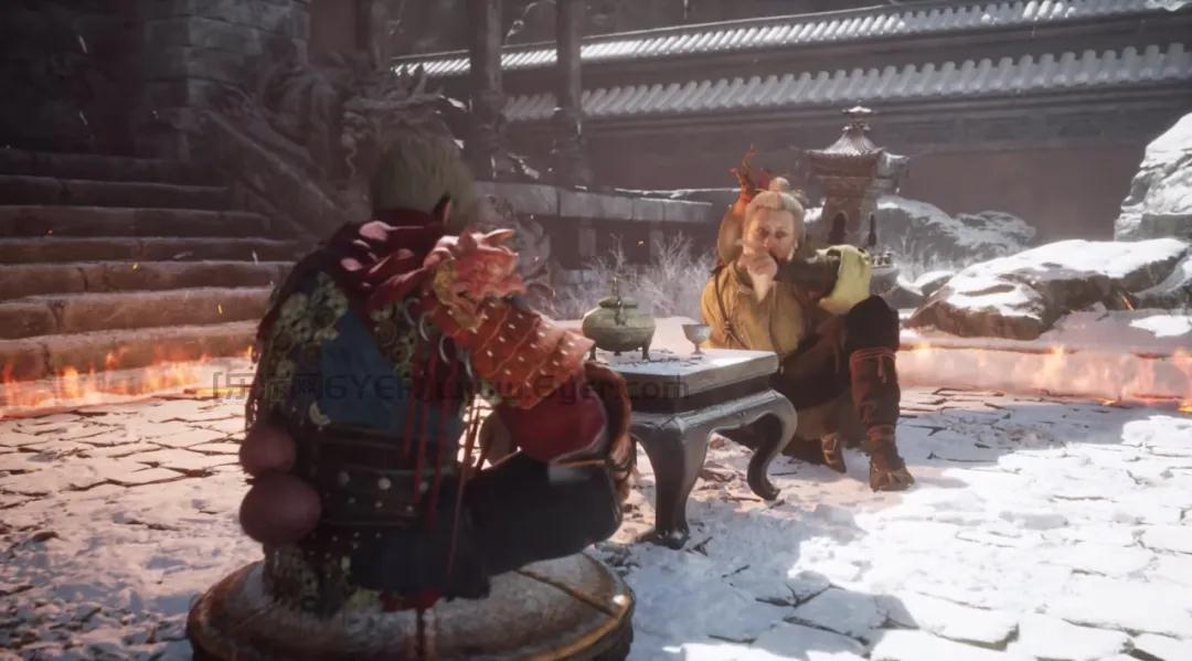 比如,预告片结尾处,出现了猴子与一位老者在火圈内对谈的情节,有玩家猜测这位老者是《西游记》作者吴承恩,“(吴承恩)四处旅行寻找灵感素材,也遇到了不少妖魔鬼怪,过程中还与天命人相遇、交谈,最后平安回家撰写《西游记》,这不就闭环了吗?”这条评论,获得7500个点赞。
