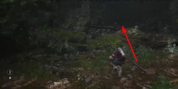 1、首先玩家来到这个后山的土地庙,我们先向左后方走这个小路。