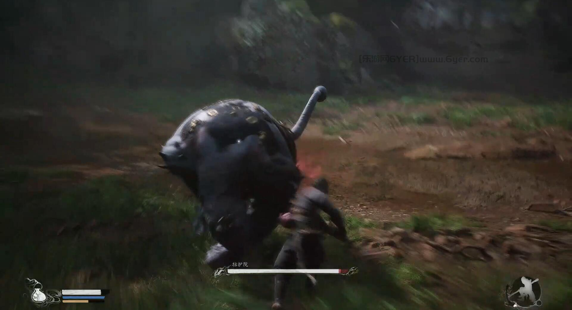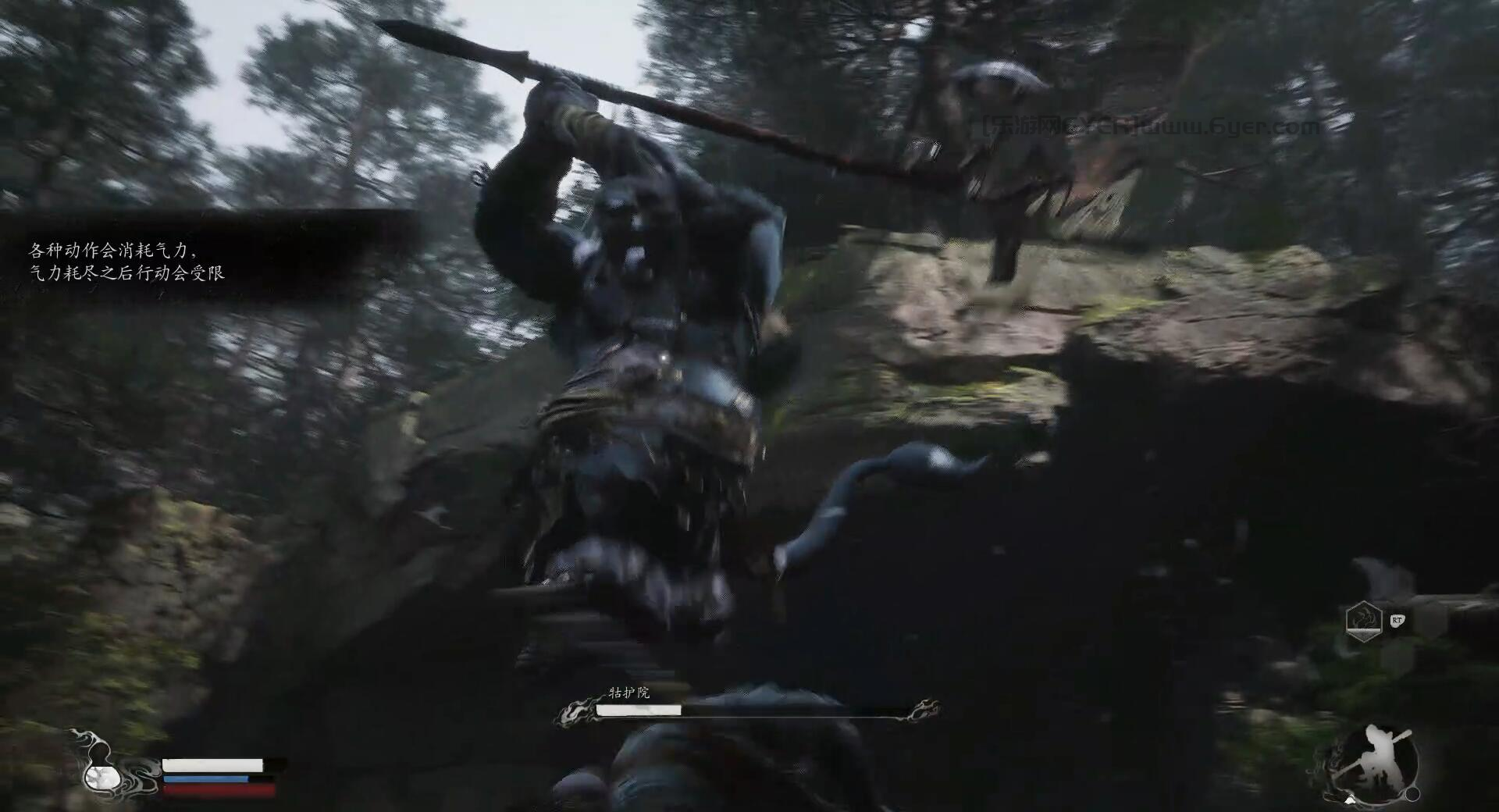 应对讲解:虽然冲刺速度快,但是输在boss不会转向,在牯护院身体前倾下沉,将矛插入地面时,立刻远离他即可。