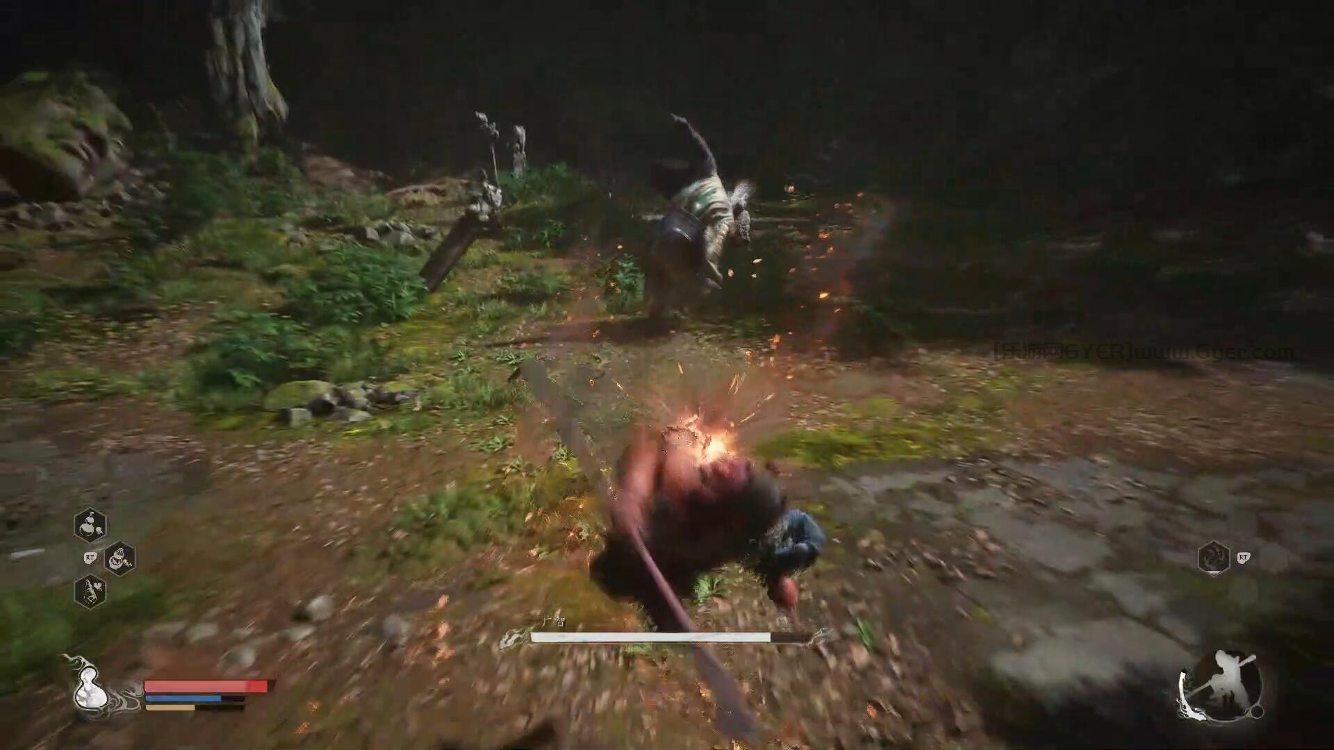 应对讲解:最方便的解法是被铁山靠后立刻按闪避键,向侧边闪躲,以免向后闪避时让黑风大王有其他衍生技和追击技(俗话说不怕boss难打,就怕摸不清他的招式思路)