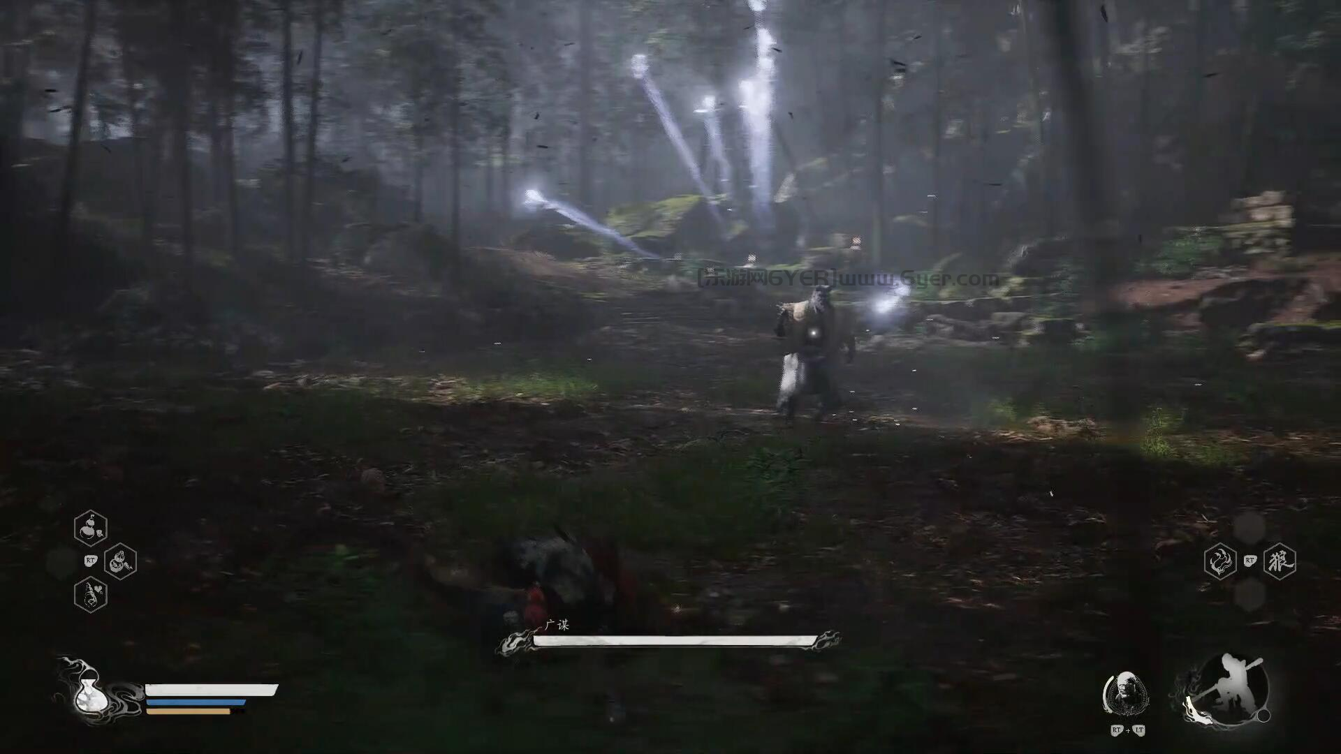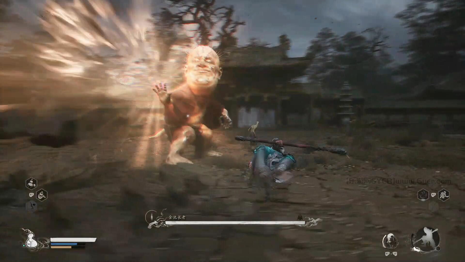 作为游戏中第一个为远程招式的boss,只要玩家学会棍法里的棍花招式,便可轻松化解他的追踪球。