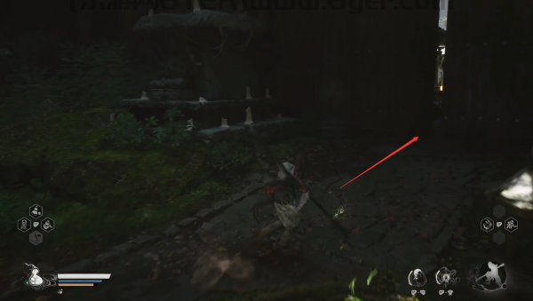 1、玩家战胜黑风大王后,直走通过左边的台阶和一条往上走的小路,继续通过破旧的屋子。