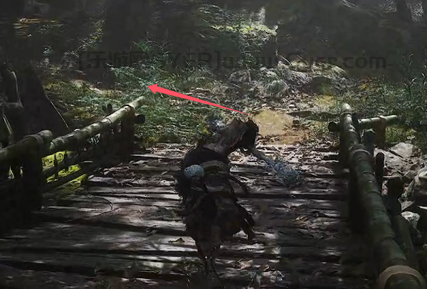 3、清掉它之后,穿过独木桥,往桥头的11点钟方向走,如果可以看到一个木制框架大门,就证明是对的