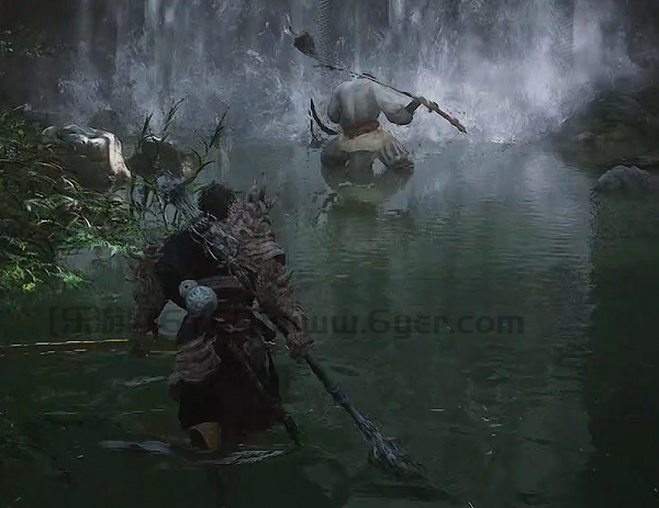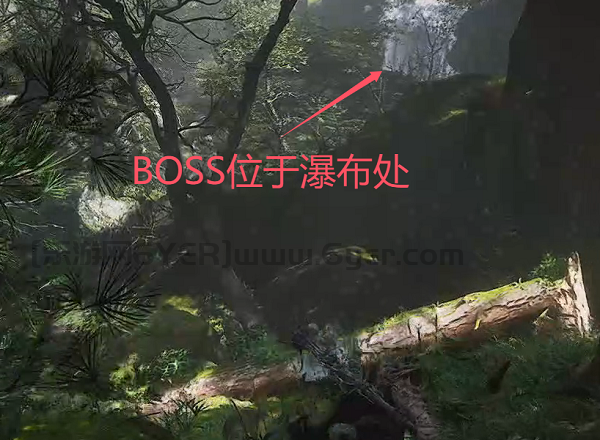 4、继续往里面走一会,看到瀑布位置,BOSS就隐藏在其中。