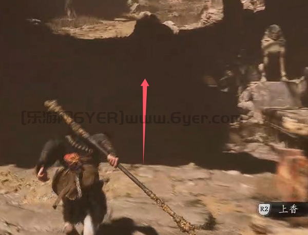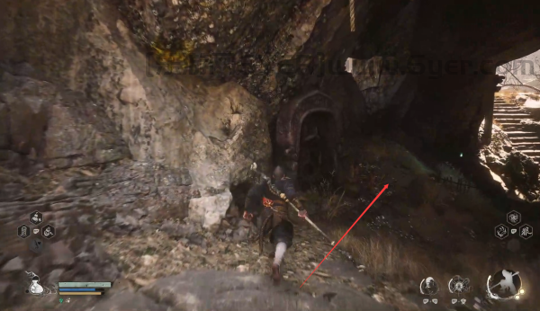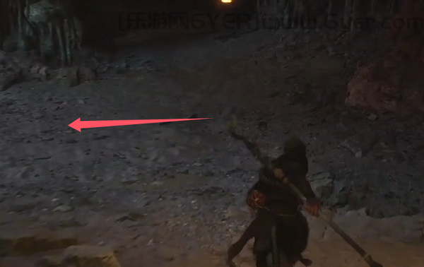 2、跳下去后,沿着箭头所示方向进入山洞中。