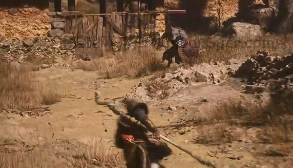 4、穿过后,将会看到一个破旧的房子,在这个院子里将看到地狼BOSS。