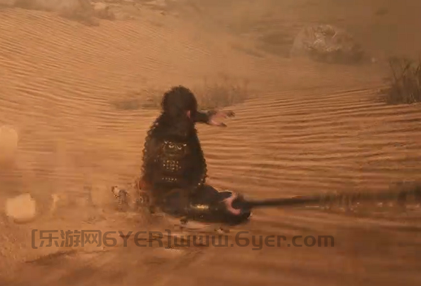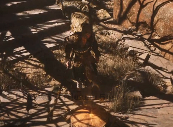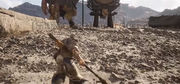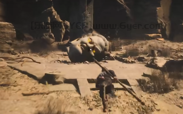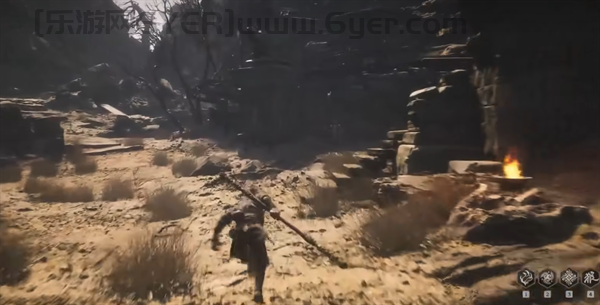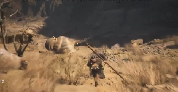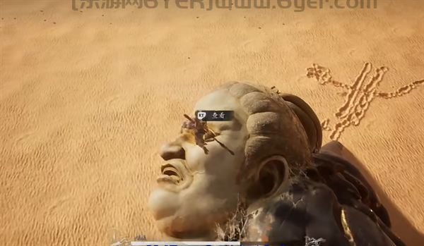 到达目的地后可以发现数百年前的老黄风大圣,我们和他对话,接着从他面前跳到沙地上。