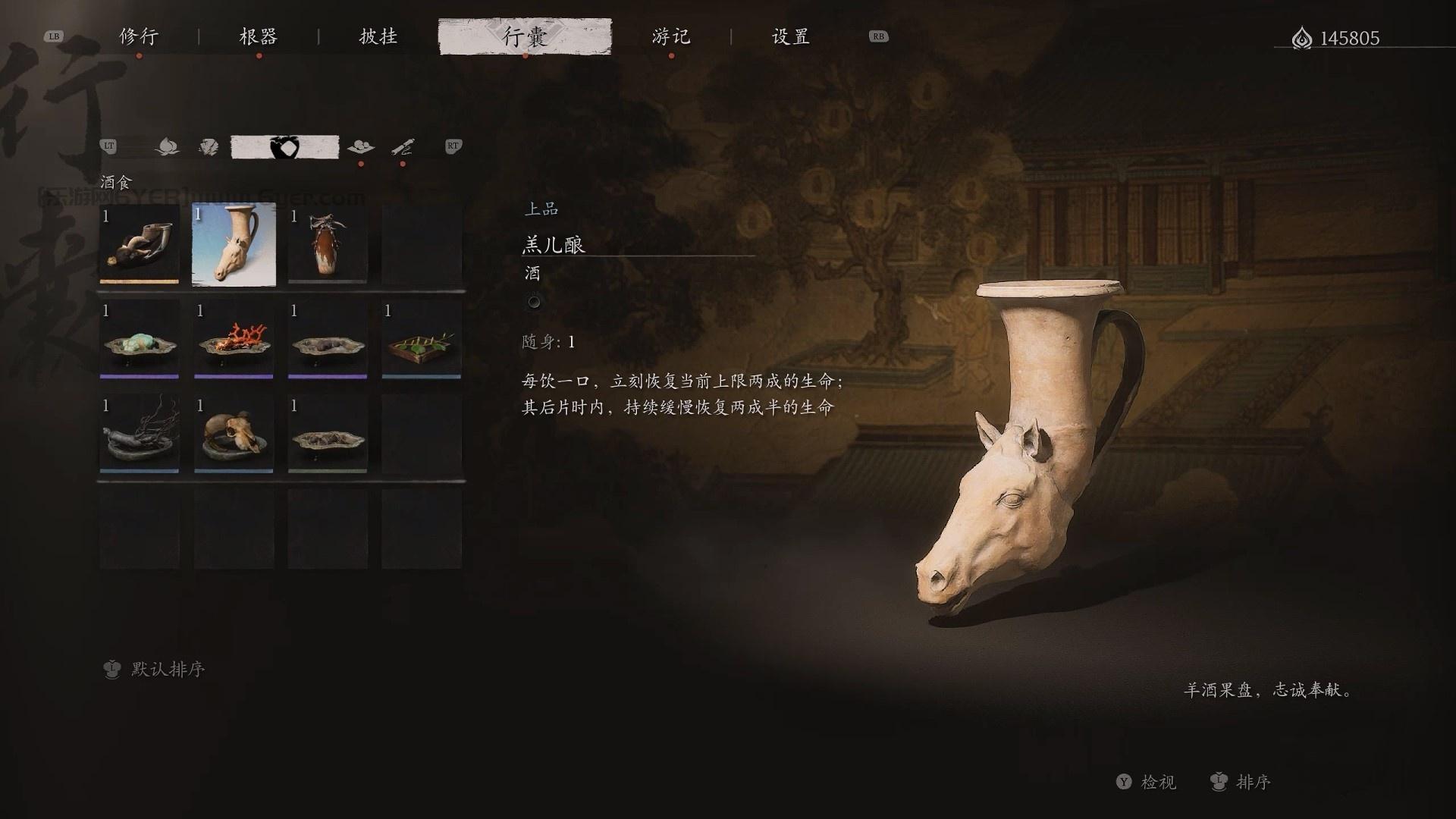 黑神话悟空酒品推荐升级羔儿酿或者神珍千日醉和龙膏,羔儿酿每饮一口,立刻恢复当前上限两成的生命其后片时内,持续缓慢恢复两成半的生命,前期非常好用,升级后可以提高回复量。