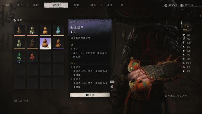 2、彩玉葫芦:击败毒敌大王获取,可以增加饮酒速度,可以喝七口,属于非常不错的葫芦。
