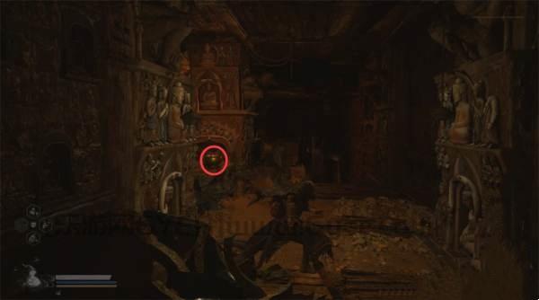 3、一直往下去后,到达户外流沙平台上,滑下滑坡时,跳起来按重攻击,就可以跳上去,拿到【泡酒物】虎舍利。