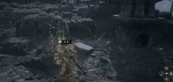 4、打完继续往前走,穿过面前的石头缝,穿过后往右前方观察,还能看见一个地莲,击败获得。