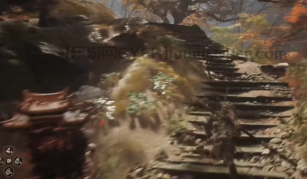 1、首先我们要来到火焰山-灰烬林-春秋寨。面向土地庙直接右转前进。走到尽头从右转的楼梯下去。