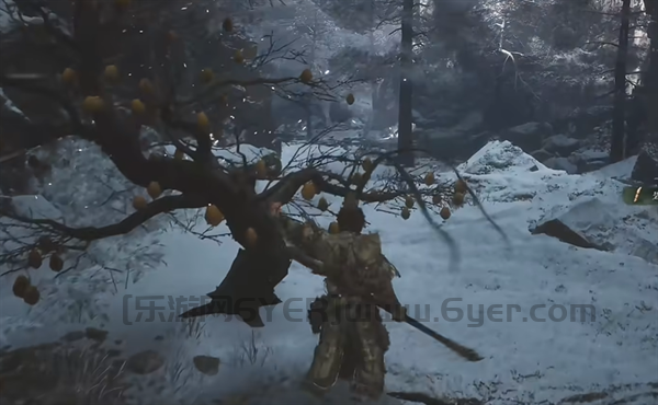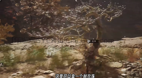 3、跳下去后继续前进,会发现瀑布下面的池塘的岸边有一颗交梨树,靠近采集即可。
