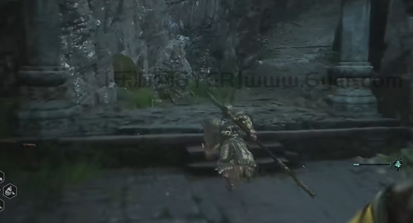 1、首先我们来到,盘丝岭-兰喜村-朱家大院。朝着土地庙右侧的楼梯前进。