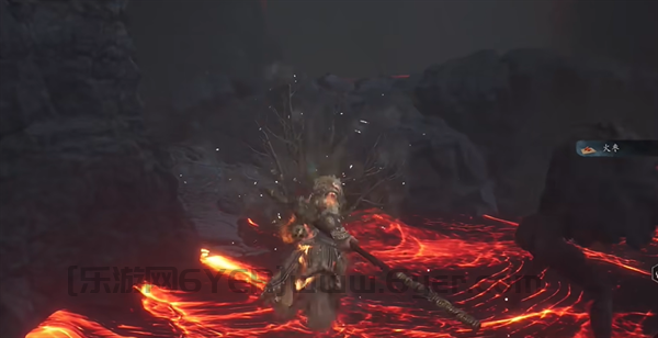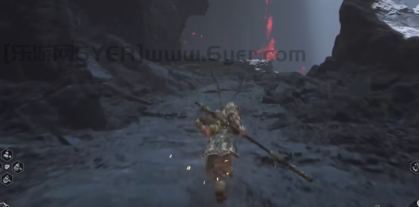 2、在下坡处看见小怪我们直接从怪物的左侧跳下去,下去后顺着岩浆仔细搜寻,可以找到4个火枣。