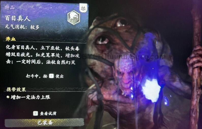 精魄·百目真人的效果是给地上插旗,一个范围性的加攻击力(我简单看了一下,好像可以加100多点攻击力),猴毛可以吃到这个效果。想象一下一群猴毛加本体一起重击一个boss何等暴炸的伤害!