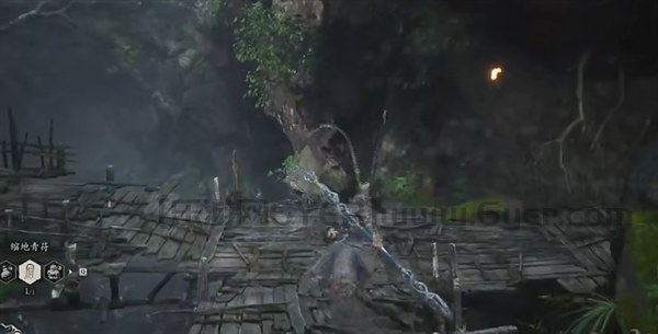 1、首先我们来到翠竹林 - 白雾泽。到地方后直接左转朝着木质吊平台方向走,在岔口处会发现有个剧情小BOSS,我们击败他解救申猴。