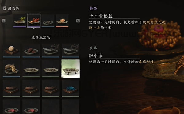 黑神话悟空中有很多的泡酒物,有的需要我们击败BOSS,有的则可以直接在申猴处直接购买。泡酒物搭配酒品可以让我们在战斗中大大增加气力,生命,法力等等,可以显著提高我们的战斗效果。