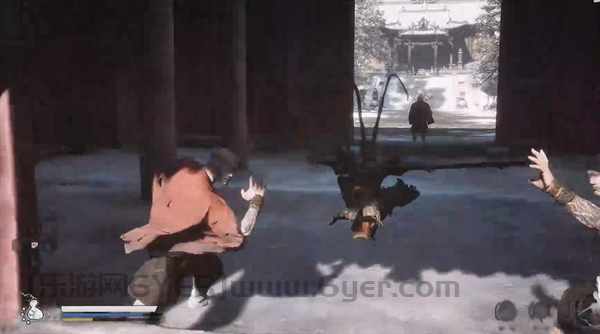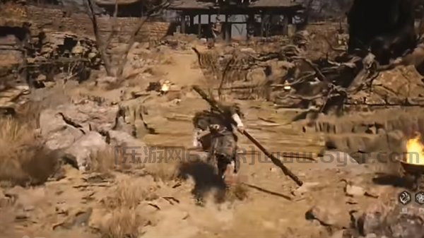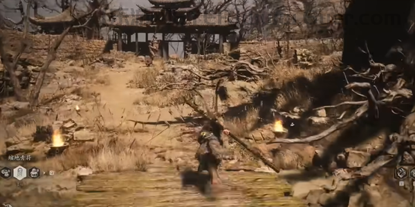 2、然后往右前方走,穿过有小怪镇守的石围栏缺口,然后前进穿过寺庙。