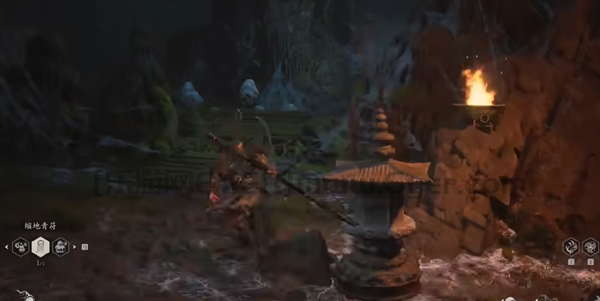 1、首先我们来到黄风阵-定枫桥。面对土地庙直接右转下坡,然后在下坡的尽头的右侧有一个祭台。