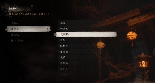 1、首先抵达盘丝洞的花间桥处,接着面向土地庙,向其后方的道路行进。当行至岔路口时,选择右侧的道路前行。