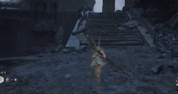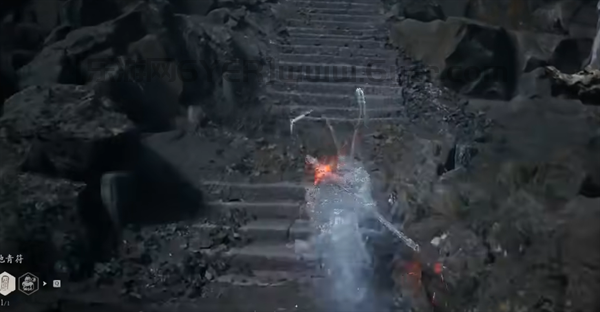 2、上楼梯之后,我们会看见一片建筑区域。这时看向岩壁方向,能够看到一些已经断裂的楼梯。沿着这些断开的楼梯向上攀爬,便能到达上层。