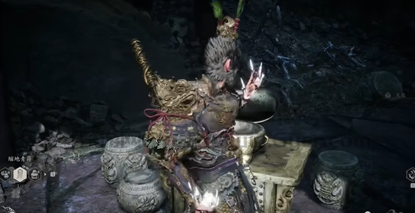 2、然后在岔口处右转,右转走个10米就能看见申猴,我们对话申猴,他就会送我们一个胆中珠作为奖励,并且以后还可以再申猴处购买道具等。
