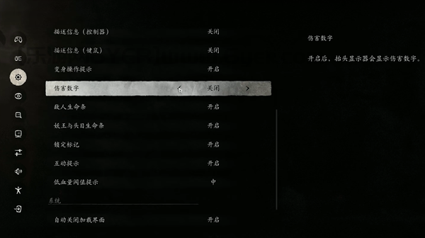 在黑神话悟空游戏中伤害数字是可以进行关闭的,想要关闭这个选项,我们可以在游戏的设置页面,接着点击第三个游戏设置,然后下滑找到数字伤害接着点击关闭即可。