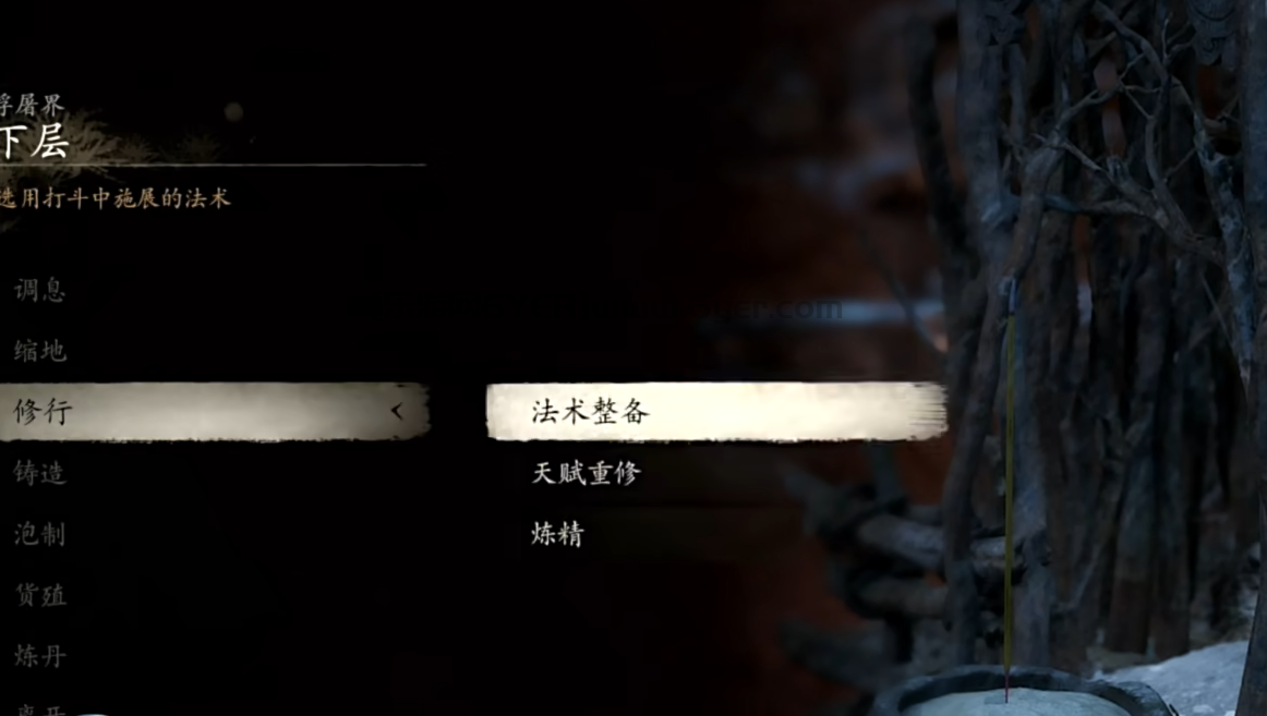 在黑神话悟空游戏中想要切换铜头铁臂法术,需要前往任意一个土地庙中,然后点击“修行-法术整备”,在这个页面就可以进行切换了。
