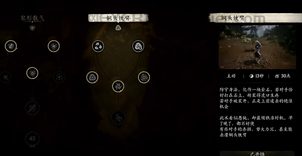 铜头铁臂则是一个纯战斗身法,使用后可以短时间内化身一块石头,能够转震敌人攻击。