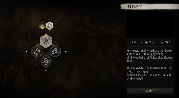 在游戏中一共拥有两种身法,分别是聚形散气和铜头铁臂,这两个法术各有特点。