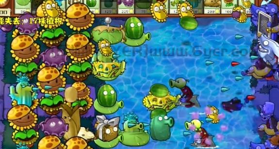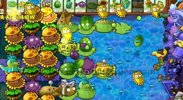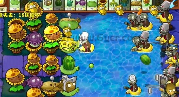 7、最后在水池中种植多个防护类植物就可以过关了。