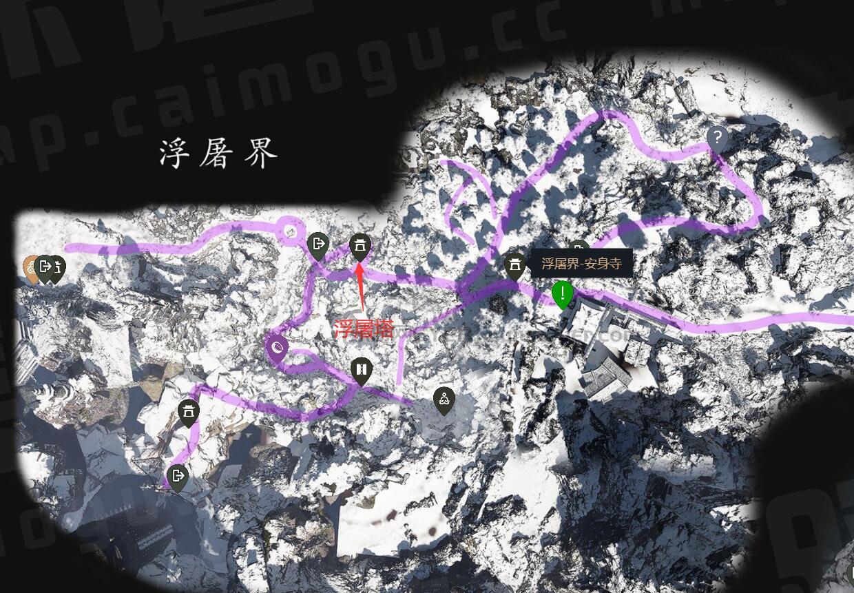 浮屠塔所在位置如下图所示,可通过安身寺门前的传送点前往。