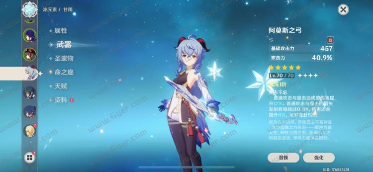 武器推荐:阿莫斯之弓:普通攻击与重击造成的伤害提升12%,普通伤害与重击的箭发生后每次经过0.1秒,伤害还会提升8%,至多提升5次。