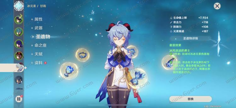 圣遗物推荐,冰风迷途的勇士:套装效果:2件套:增加15%冰元素伤害,4件套:攻击处于冰元素影响下的冻结状态敌人下,则暴击率额外高20%。