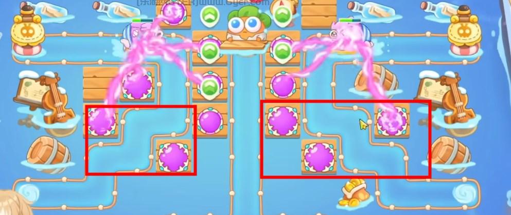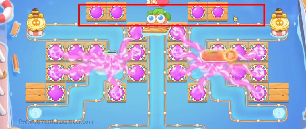 5、具体炮塔如图所示,这一关使用魔法球单通金萝卜!