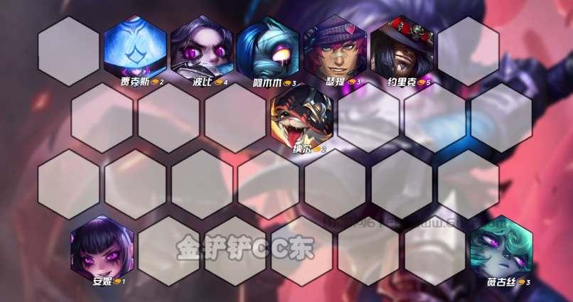 1、阵容构成:纳尔+武器+腕豪+厄加特+波比+蔚+阿木木+薇古丝;