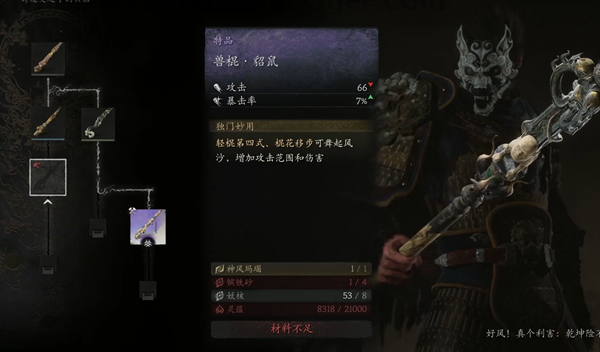 兽棍貂鼠在使用轻棍和棍花的时候能够扬起风沙,虽然武器伤害没有蟠龙高,但是拥有7%暴击,泛用性较高。