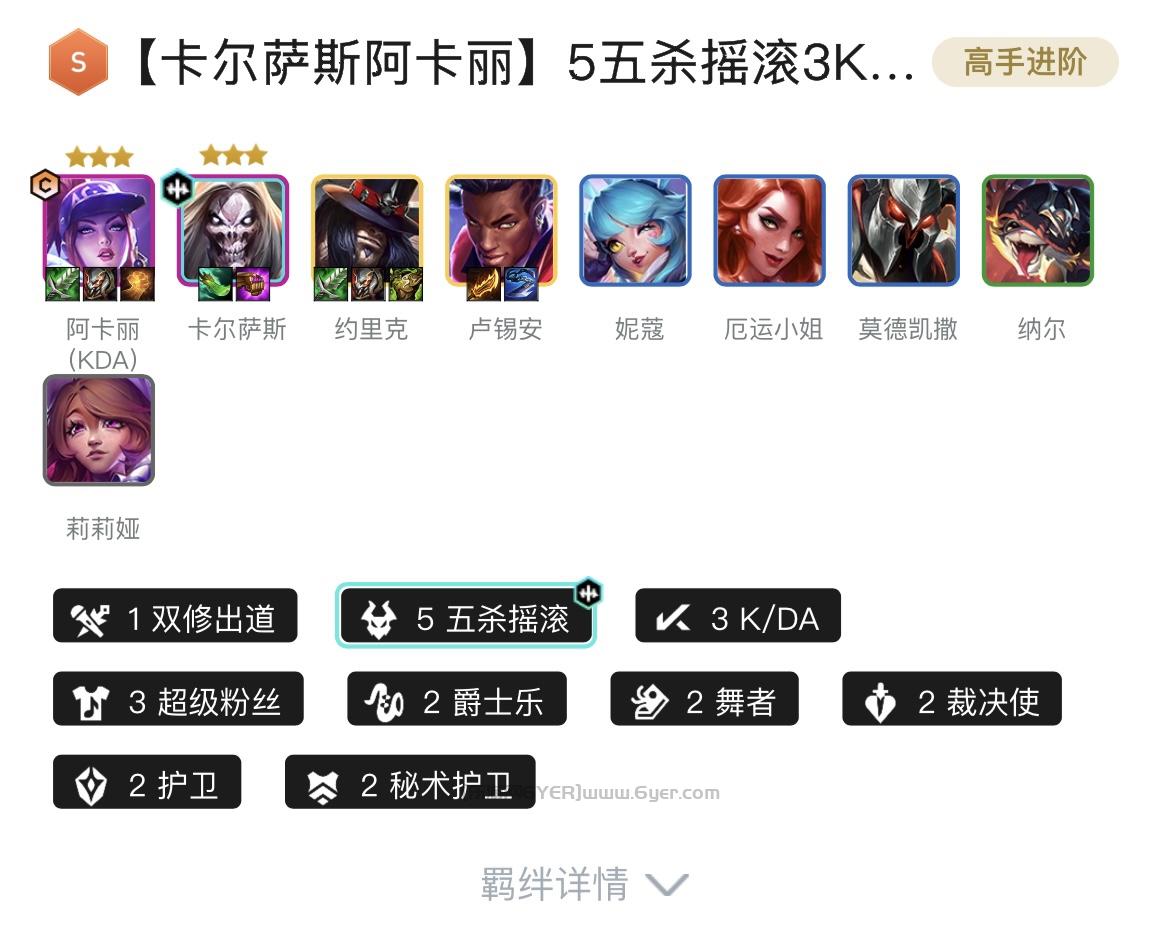 6音浪刺客、3K/DA、3超级粉丝、2真实伤害、2护卫
